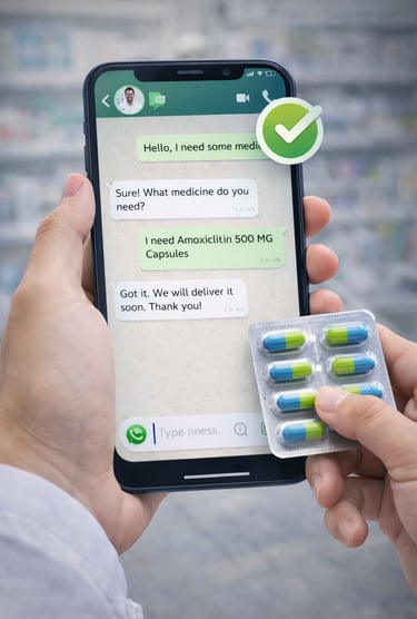 Simply send your prescription or medicine details on WhatsApp. Our team will confirm availability and arrange delivery quickly.